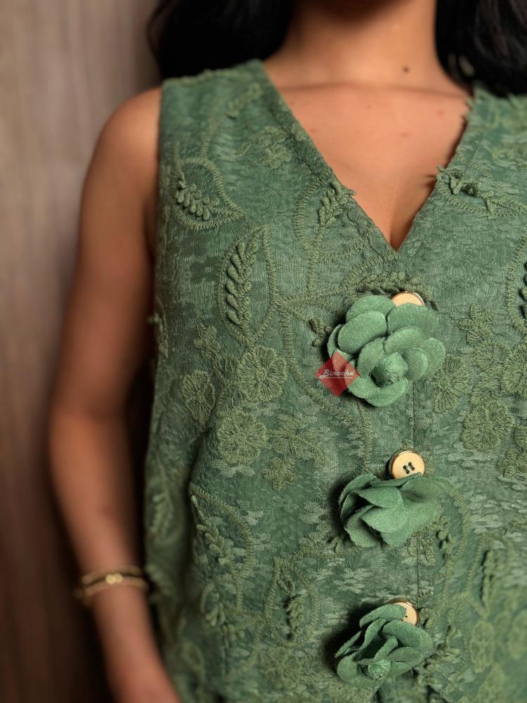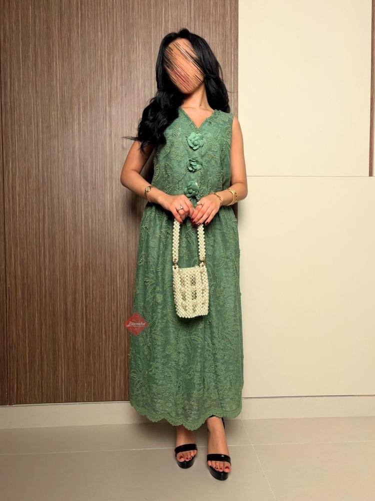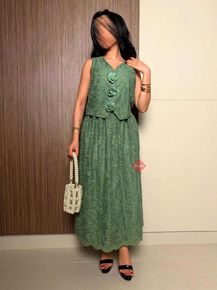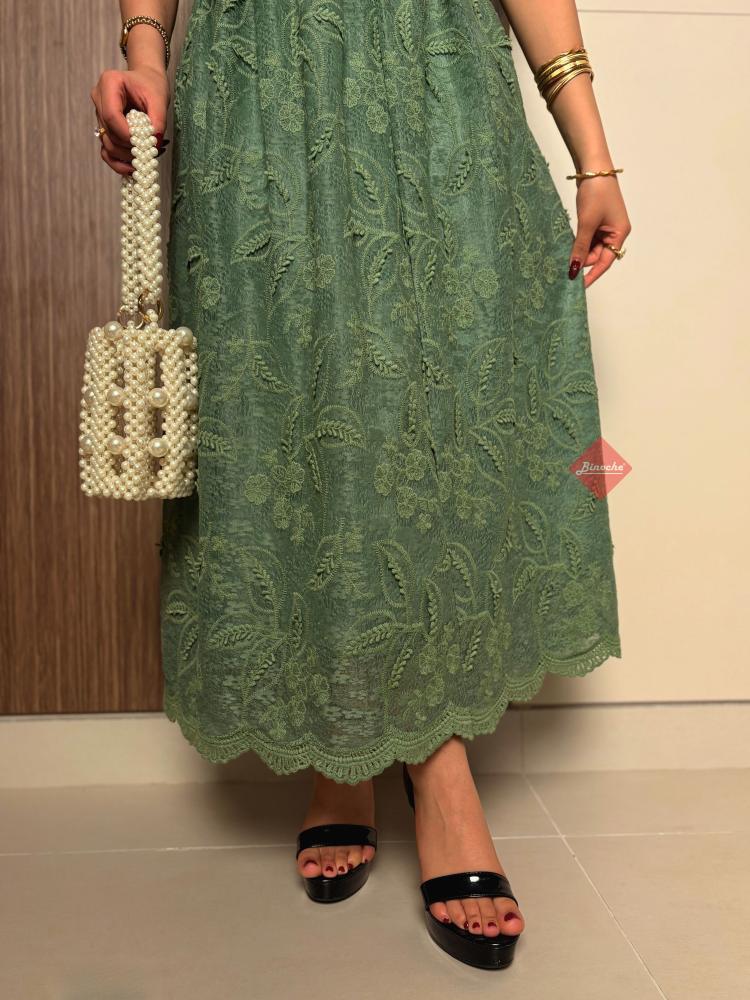 تفاصيل اكثر عن الطقم: استقبلي مناسباتكِ السعيدة بإطلالة تجمع بين الرقيّ التقليدي واللمسات العصرية مع طقم Binoche الأخضر الزيتي، المصمم ببراعة ليعكس أنوثتكِ بأسلوب محتشم وفاخر يتميز هذا الطقم بتصميمه الفريد المكون من قطعتين من قماش الدانتيل الفاخر المشغول بعناية، مما يجعله الخيار الأول لإطلالات العيد، حفلات الاستقبال، والجمعات العائلية الراقية.