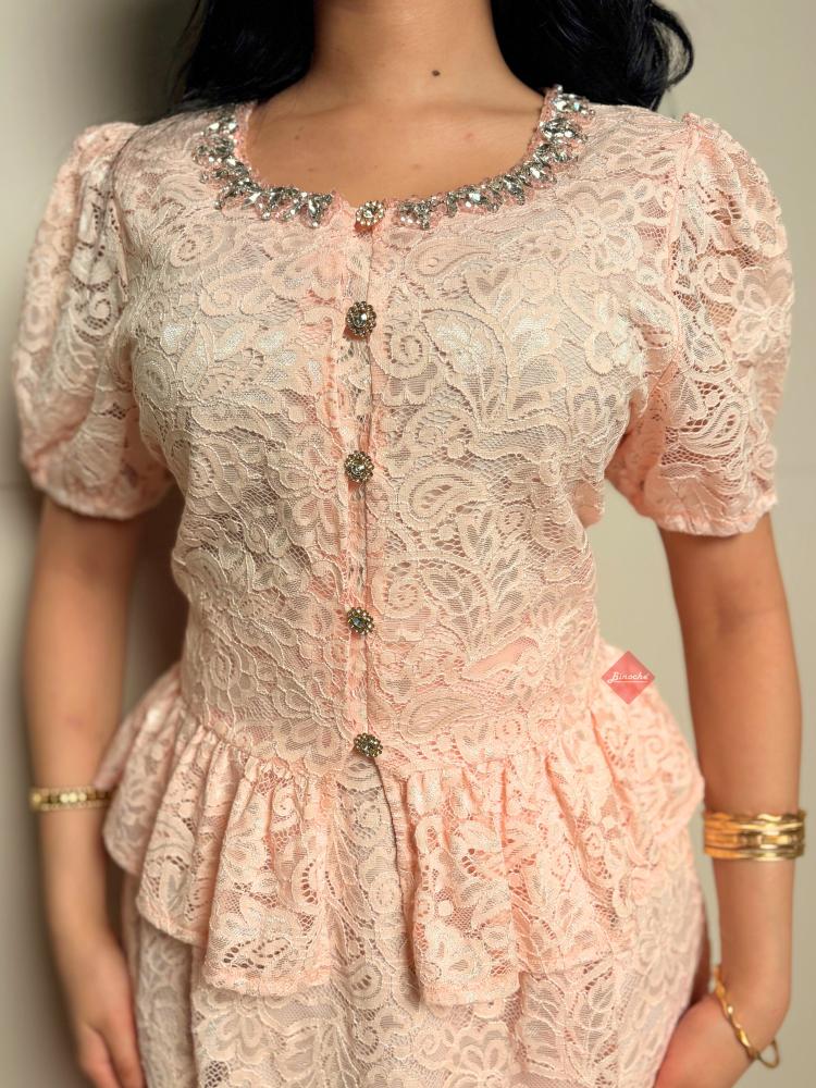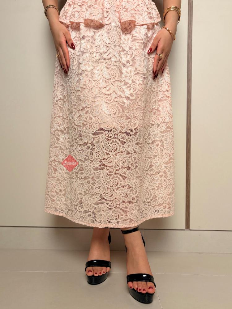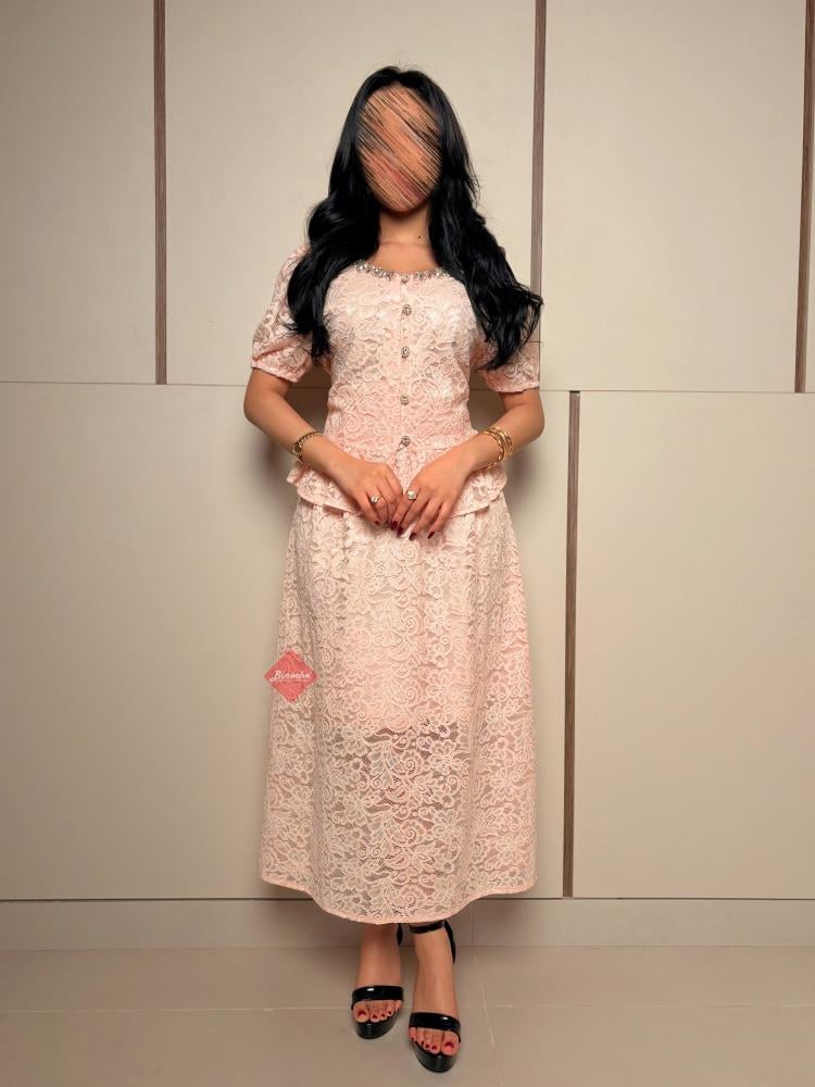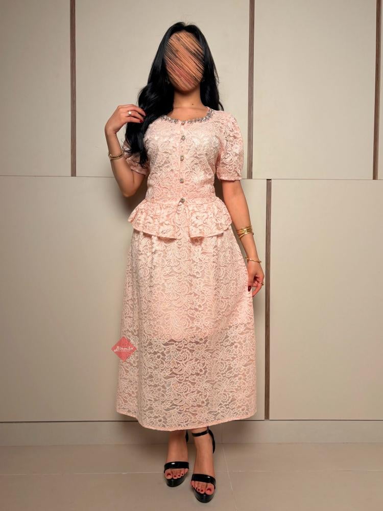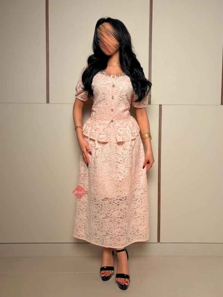 تفاصيل اكثر عن الطقم: استقبلي عيد الفطر بإطلالة مفعمة بالأنوثة والرقي مع طقم BINOCHE الجديد، المصمم ليجمع بين فخامة الدانتيل الكلاسيكي وعصرية التصميم، مما يجعله القطعة الأجمل في خزانة ملابس العيد الخاصة بكِ. يتميز هذا الطقم (المكون من بلوزة وتنورة) بلونه الوردي الهادئ (Baby Pink) وتفاصيله المتقنة التي تضفي لمسة من الفخامة على حضورك في الزيارات العائلية والمناسبات الاحتفالية.