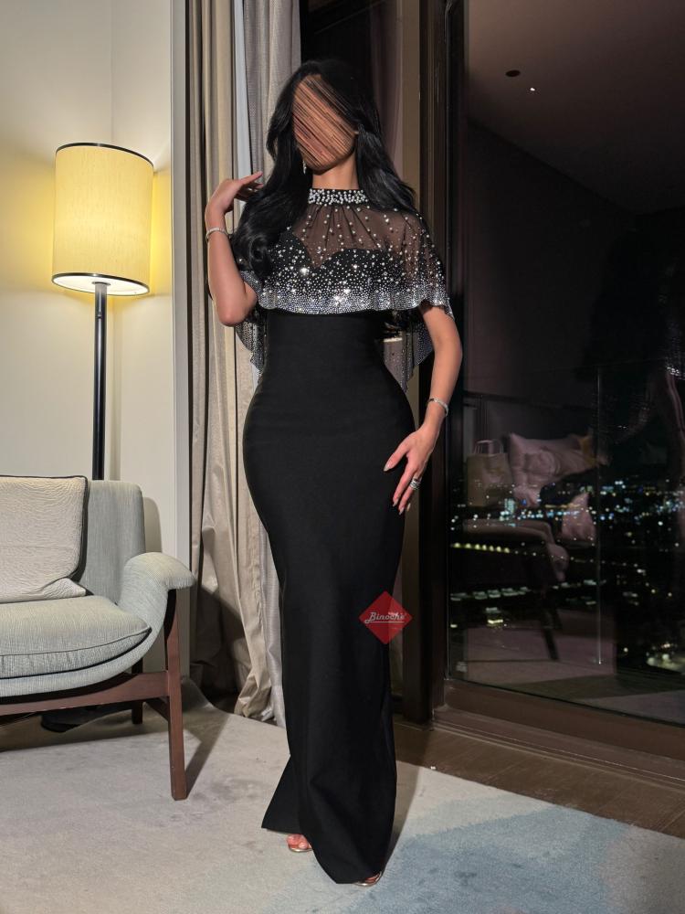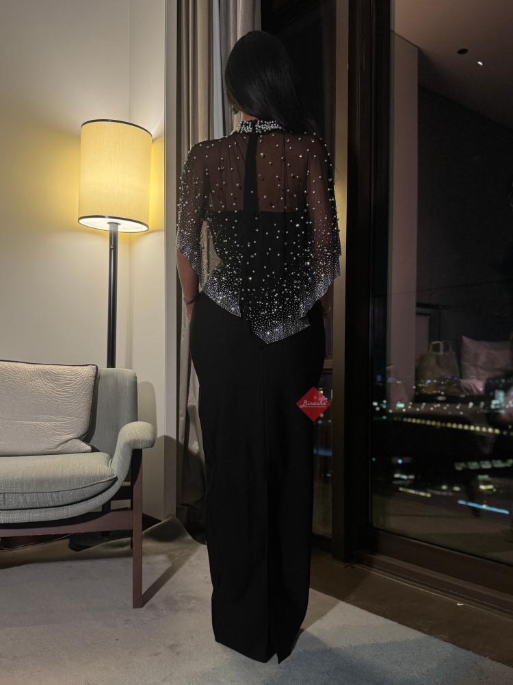 فستان كريب و وشاح مزين باللؤلؤ الفاخر