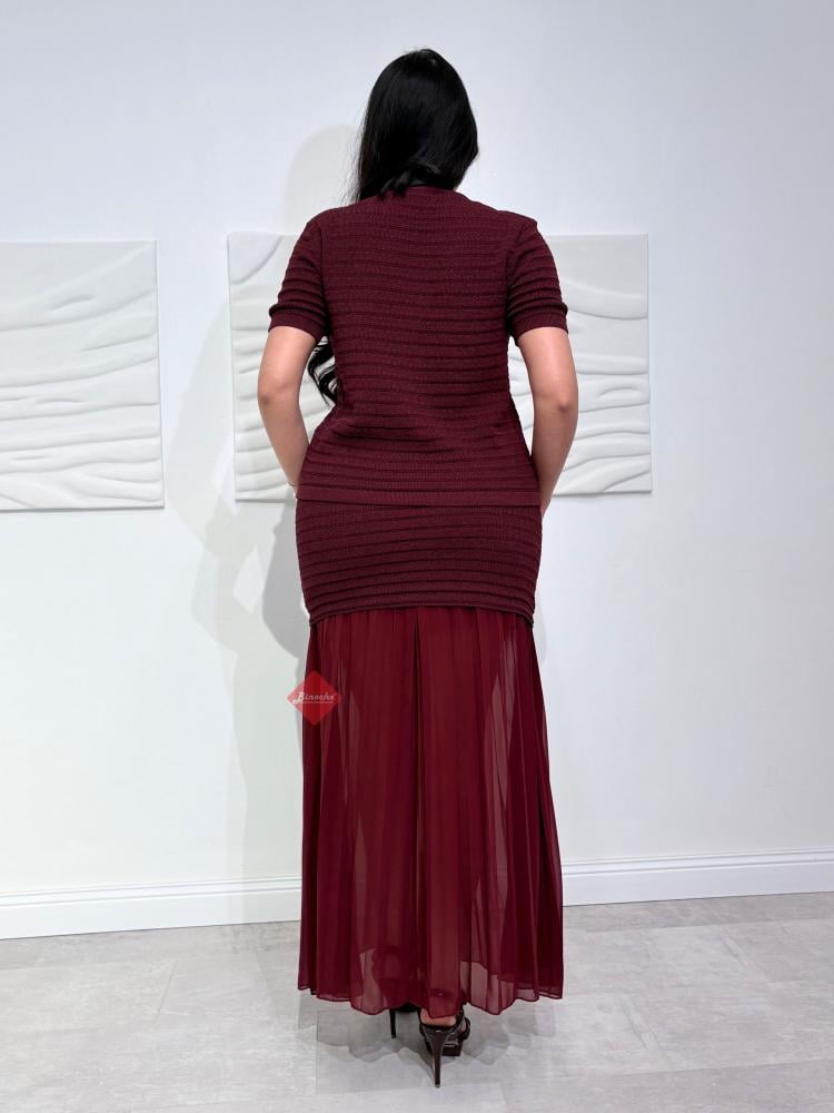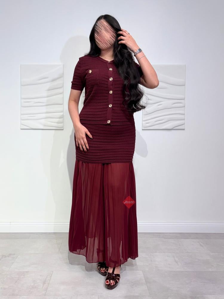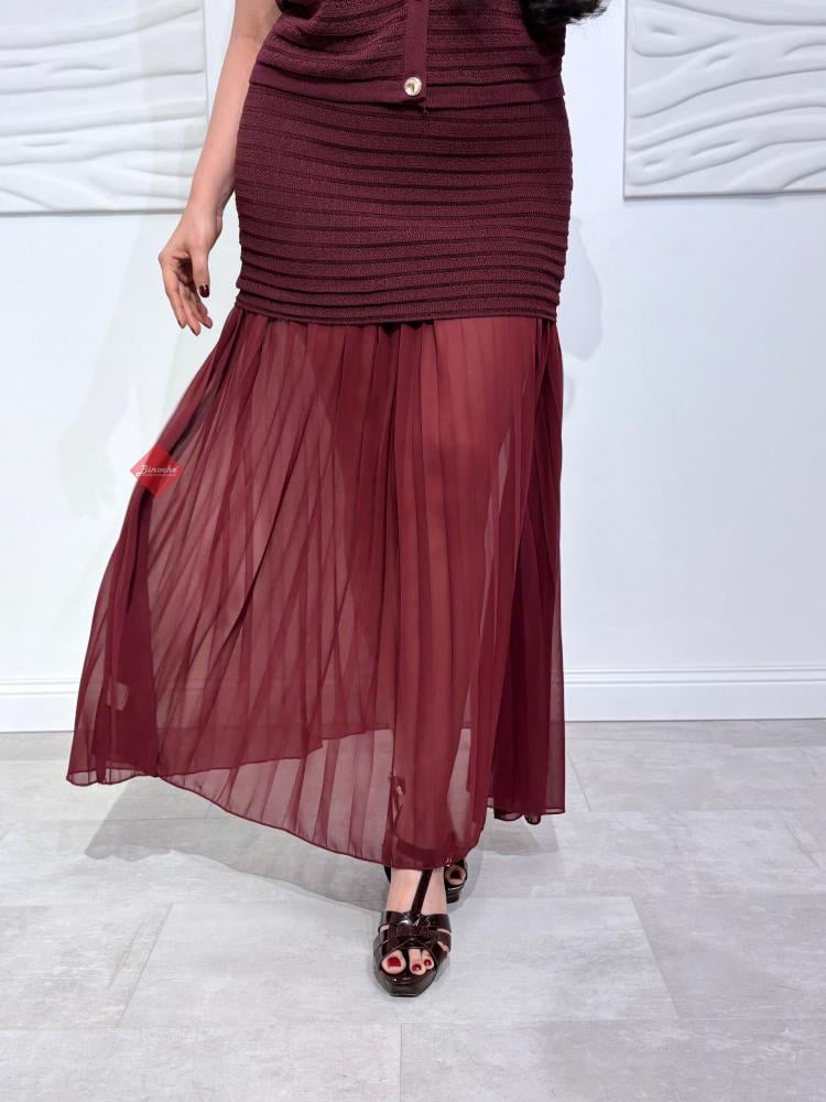 طقم بليزر و تنورة بخامة التل الناعمة بكسرات