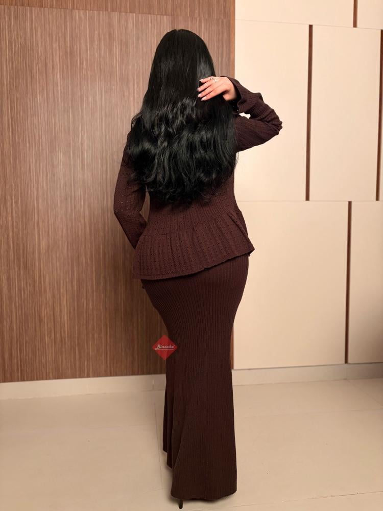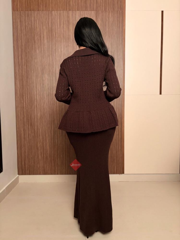 - تفاصيل اكثر عن الطقم: تألقي بإطلالة تتألقي بطقم شتوي يتميز بأكمام طويلة تنتهي بكشكشة ناعمة مع تنورة طويلة بقصة حورية البحر تبرز جمال القوام.