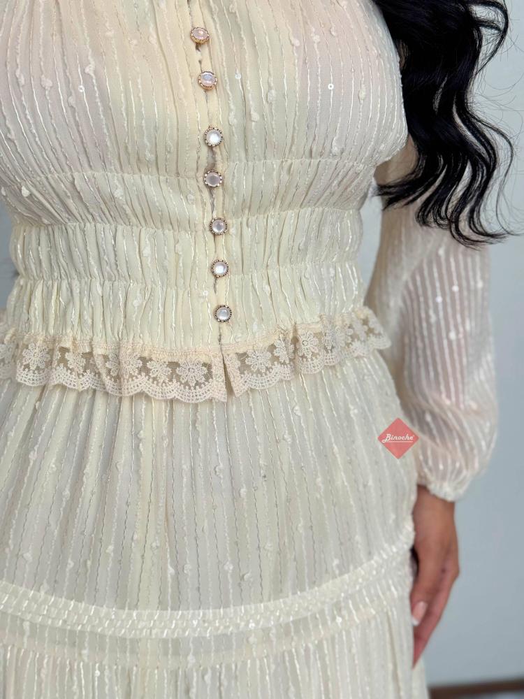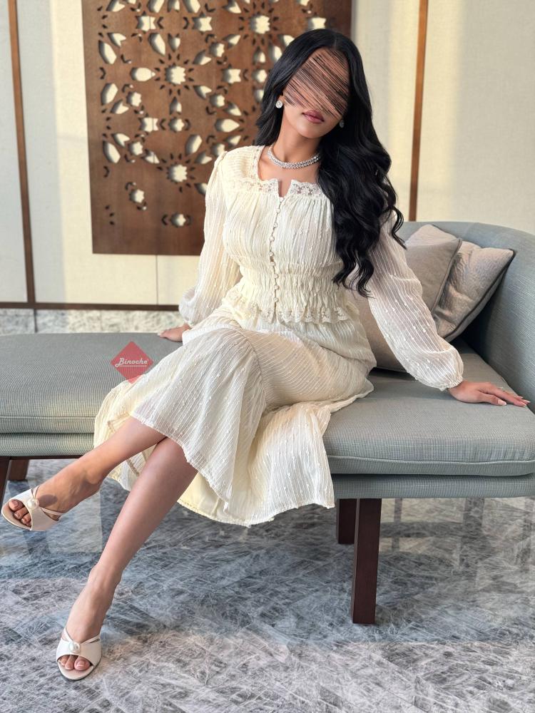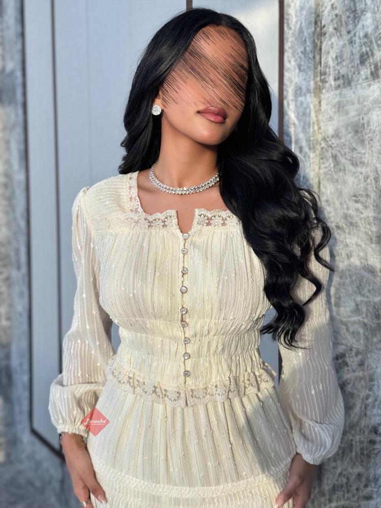 - تفاصيل اكثر عن الطقم: طقم بلوزة و تنورة بخامة الدانتيل المطرز بالترتر البلوزة مزينه بأزرار واقابله لتمدد والتنورة مزينه بطبقتين وقابله للتمدد