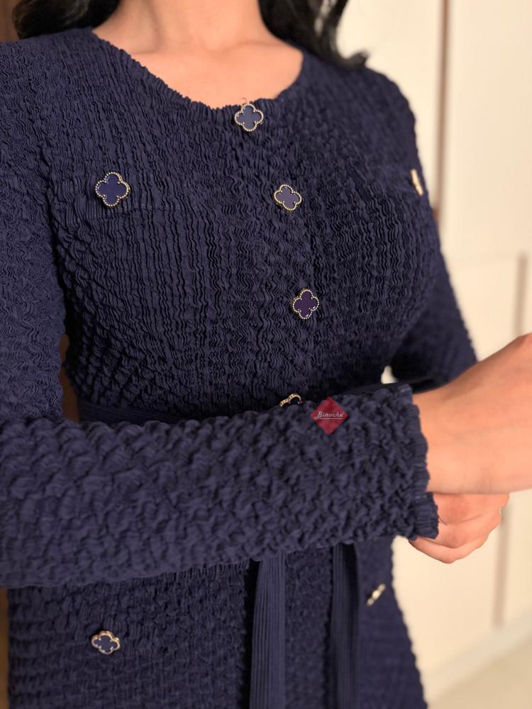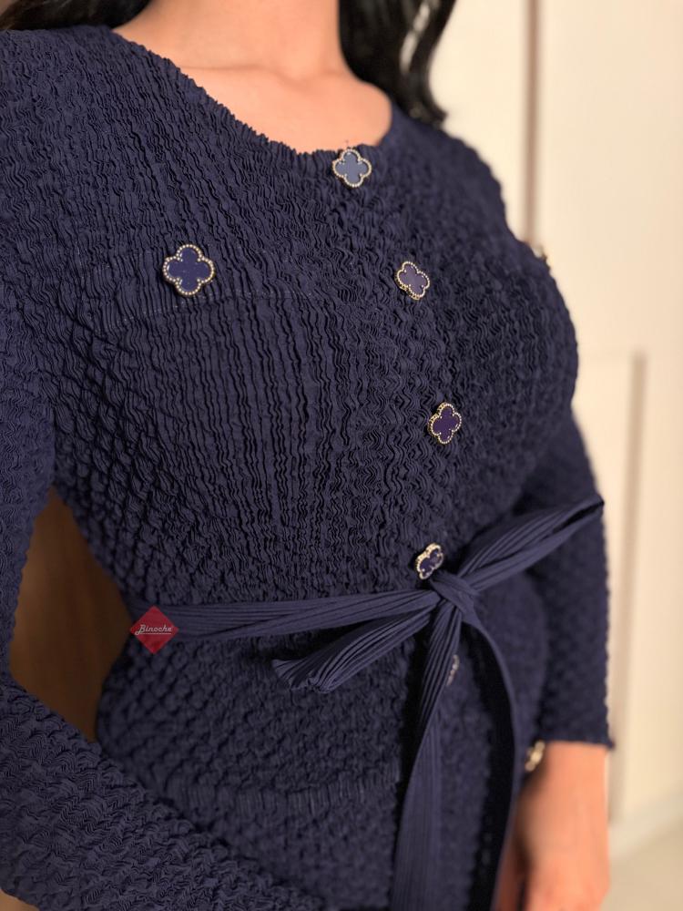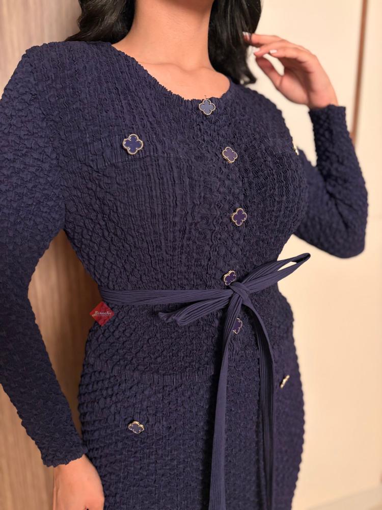 تألقي بإطلالة تجمع بين الفخامة والعصرية مع هذا الطقم النسائي المكون من قطعتين. يتميز الجاكيت (البليزر) بقصة "سليم فيت" تحدد الخصر بأناقة، مع ياقة كلاسيكية مفتوحة تضفي لمسة من الرقي.