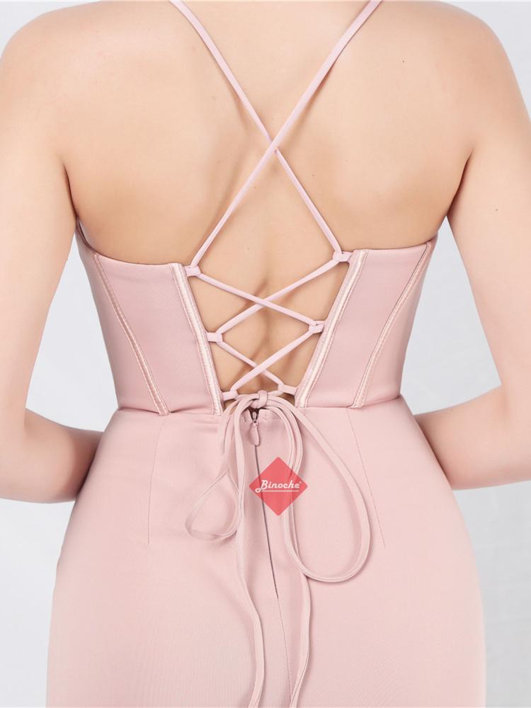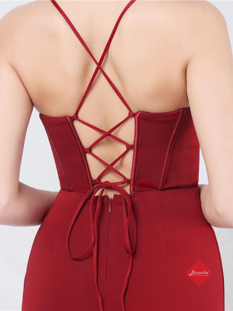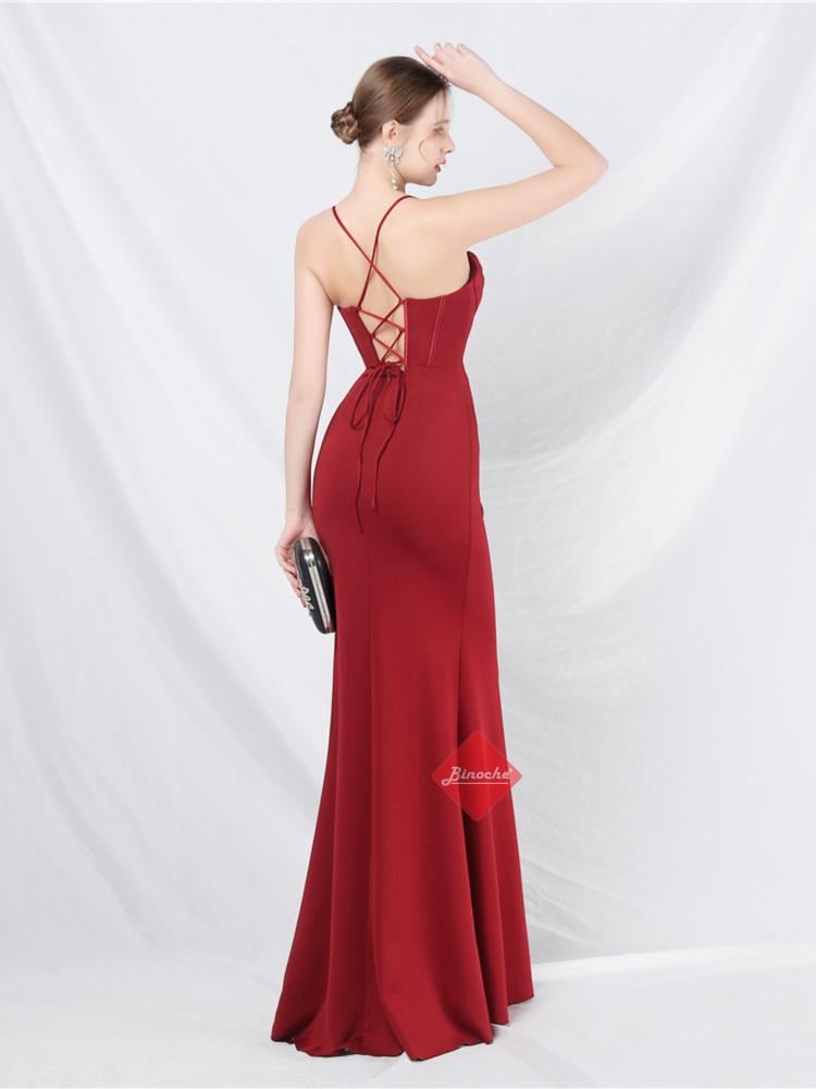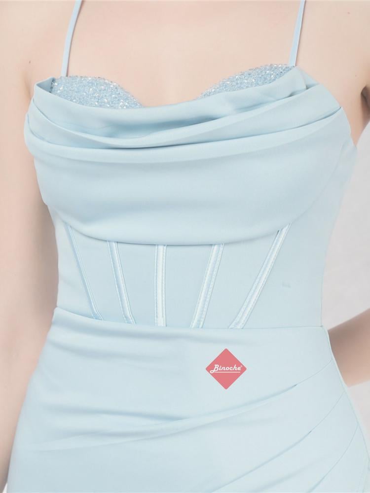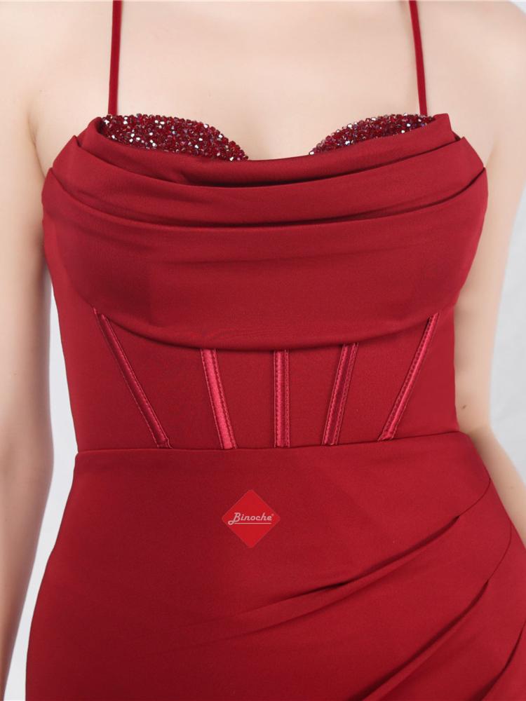 - تفاصيل اكثر عن الفستان: يتميز فستان السهرة الطويل هذا بقصة ضيقة، وتصميم كورسيه علوي مزين بالكريستال اللامع