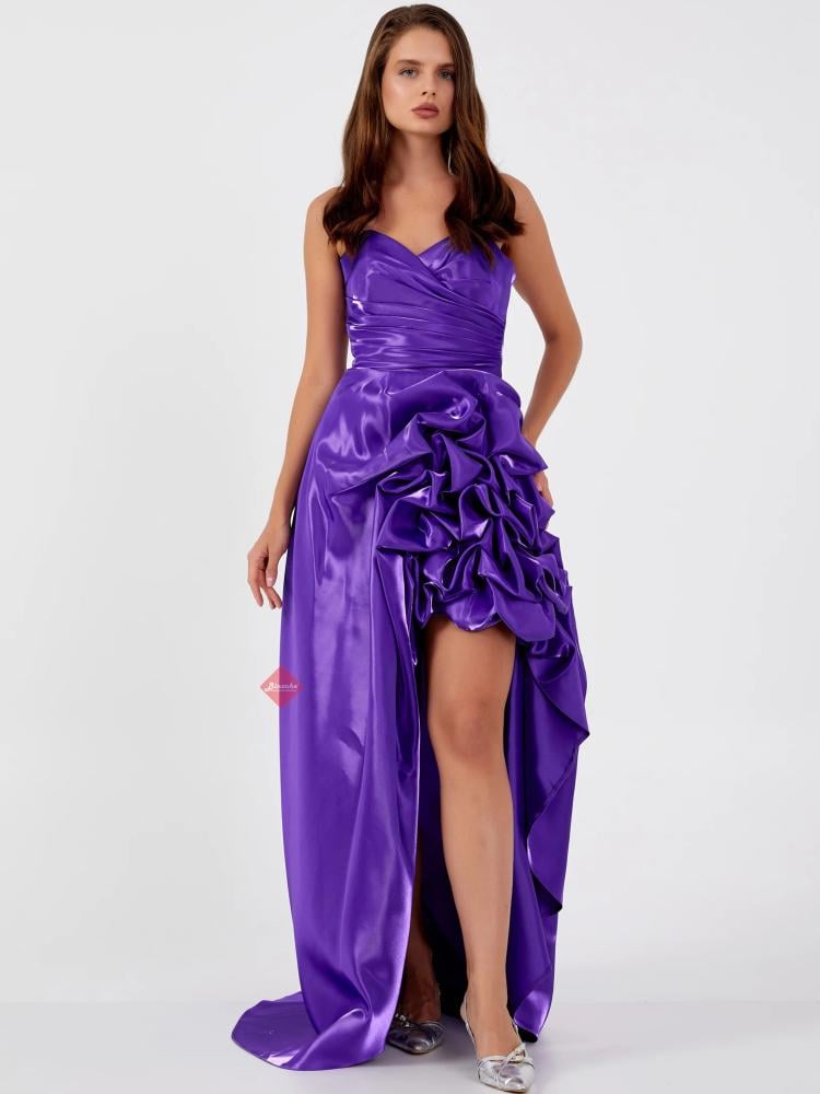 فستان سهرة لامع بطيات مميزة