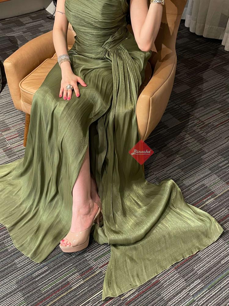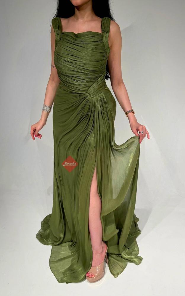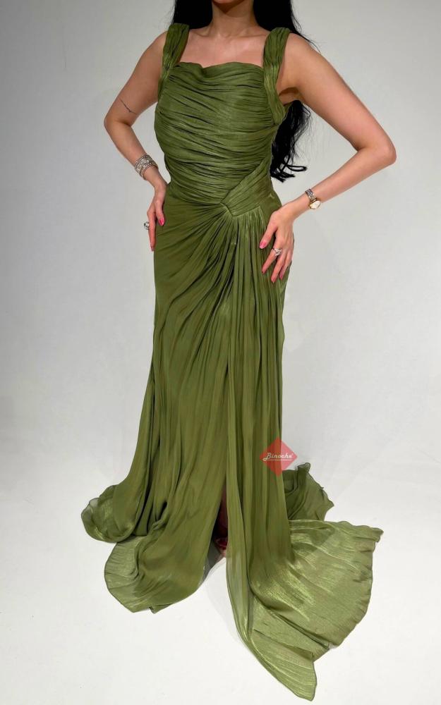 فستان سهرة طويل ناعم بليسيه ستايل كت
