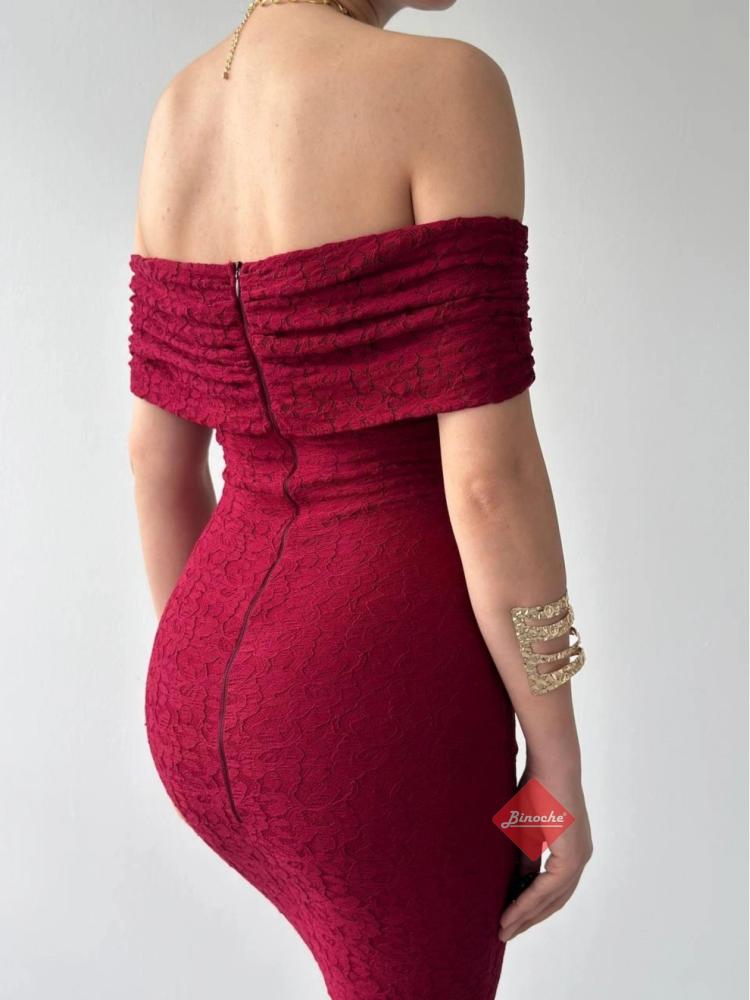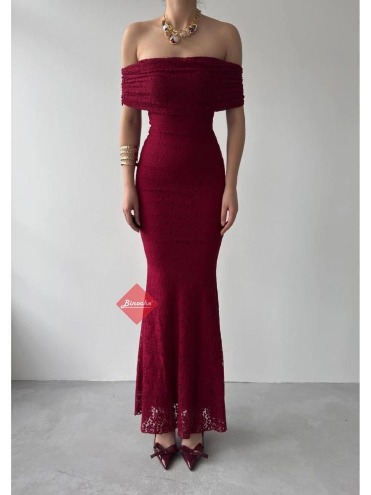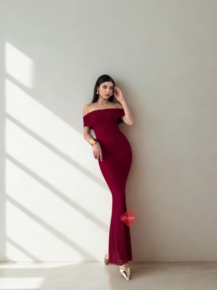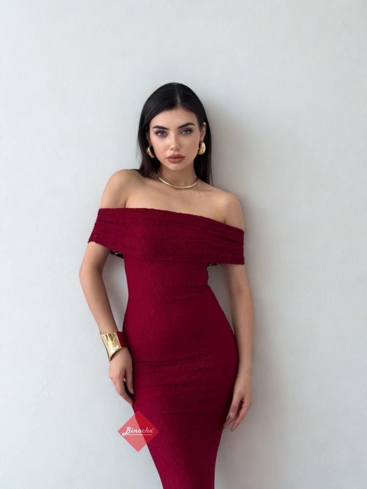 تفاصيل اكثر عن الفستان: كوني محط الأنظار في فستان الدانتيل الآسر، الذي يجمع بين الفخامة والجاذبية. يتميز هذا الفستان بتصميم اوف شولدر الأنيق وأكمام واسعة مزينة بالدانتيل