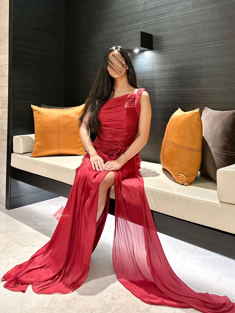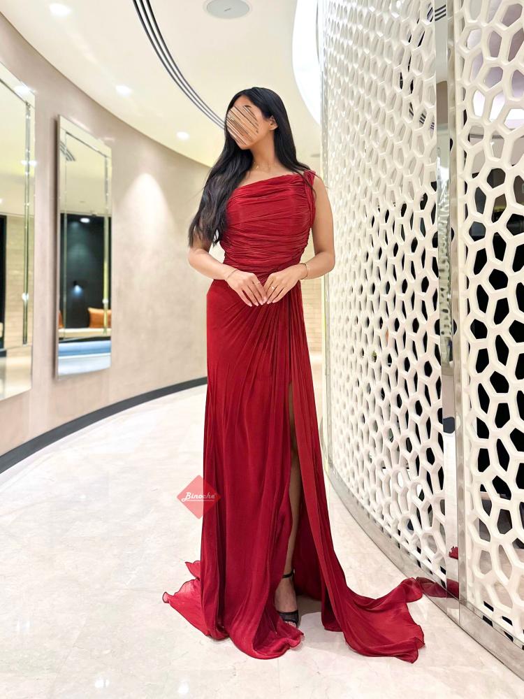 فستان سهرة طويل ستايل ون شولدر بليسيه بلمعة ساحرة