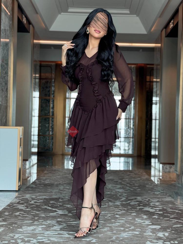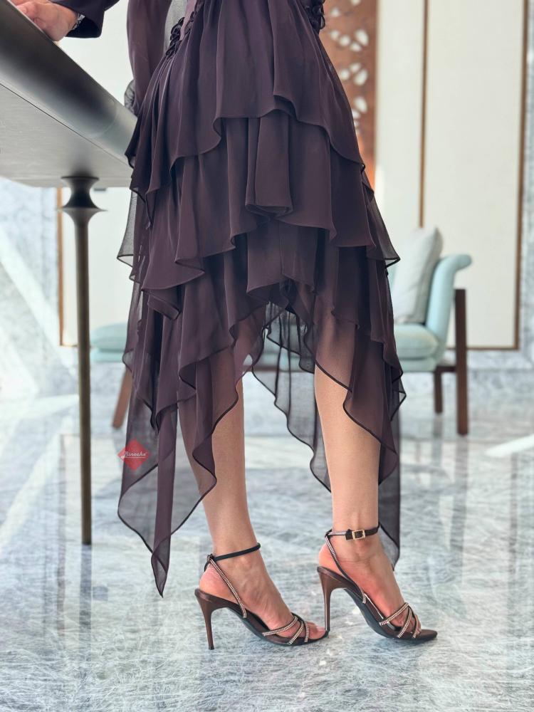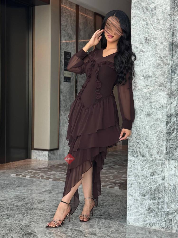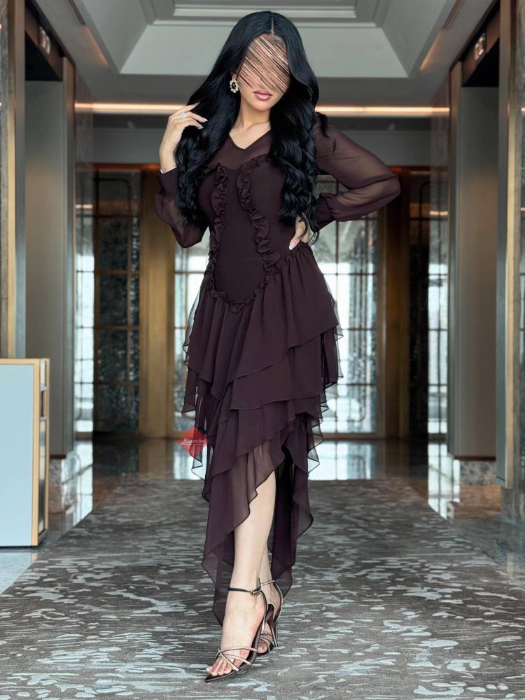 - تفاصيل اكثر عن الفستان : مزين بكريستال على الاكمام ومن الرقبة.