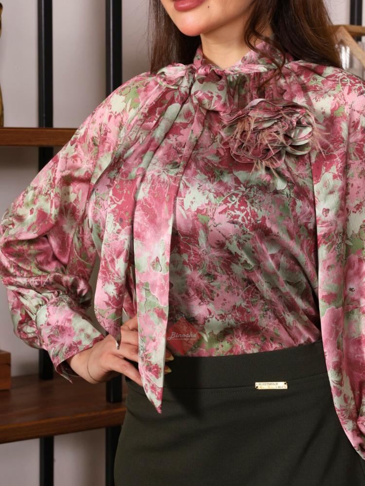 تفاصيل اكثر عن البلوزة: تألقي بأسلوب راقٍ مع هذا القميص النسائي البيج المطبوع بنقشة ورود يتميز بمزيج ألوان هادئة تشمل البيج، الأبيض، والبنفسجي، مما يمنحه طابعاً أنثوياً أنيقاً. تصميم الياقة المربوطة الأمامية يضيف لمسة فاخرة، بينما الأكمام الطويلة تمنحك مظهراً كلاسيكياً يناسب العمل أو المناسبات الخاصة