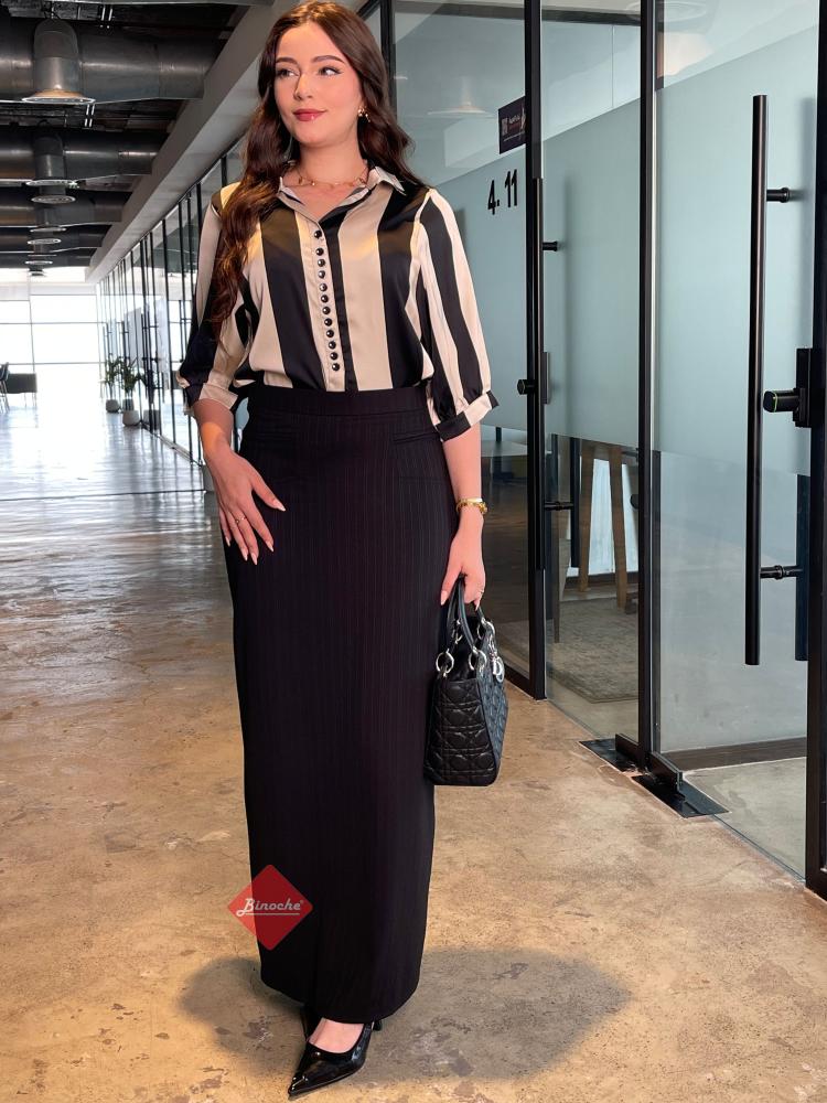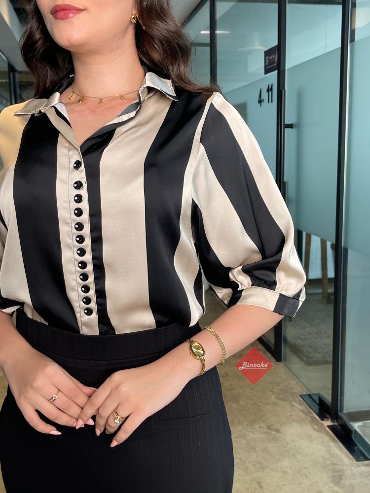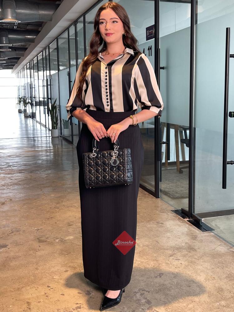 بلوزة أنيقة ستايل نص كم بأزرار