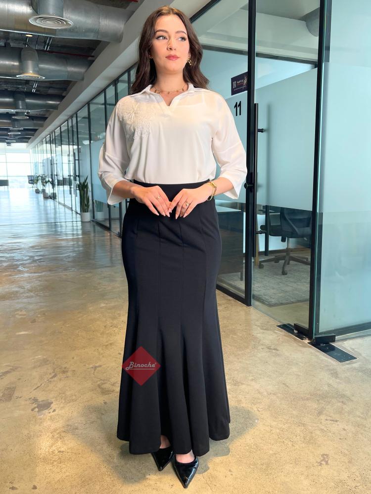 قماش عالي الجودة مريح وخفيف تطريز زهرة بارزة على الصدر لإطلالة مميزة تصميم باللون الأبيض الكلاسيكي المناسب لكل الأوقات ياقة كلاسيكية مع أكمام نصف طويلة عصرية مثالي للمناسبات، الاجتماعات، أو الطلعات اليومية الأنيقة