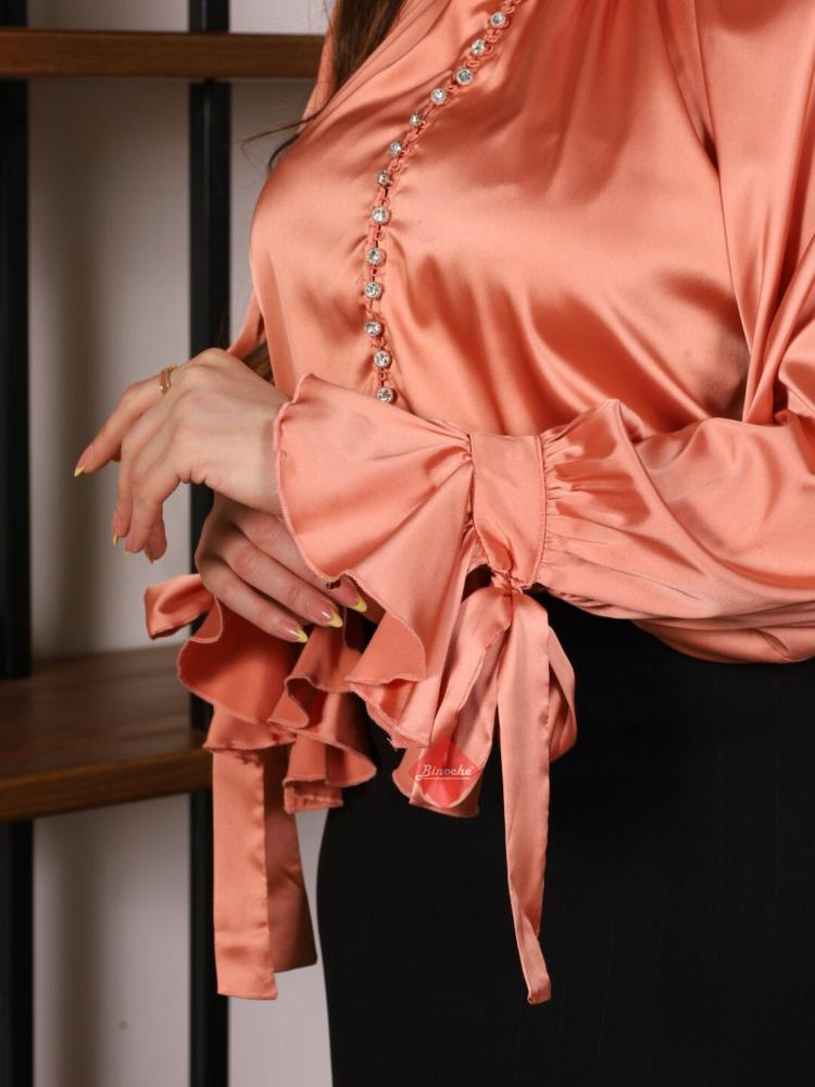 المصمم بأكمام طويلة مع تفاصيل كشكش فاخرة على الصدر والأكمام يمكن تنسيقه بسهولة مع التنانير أو البناطيل لإطلالة مكتملة الأناقة