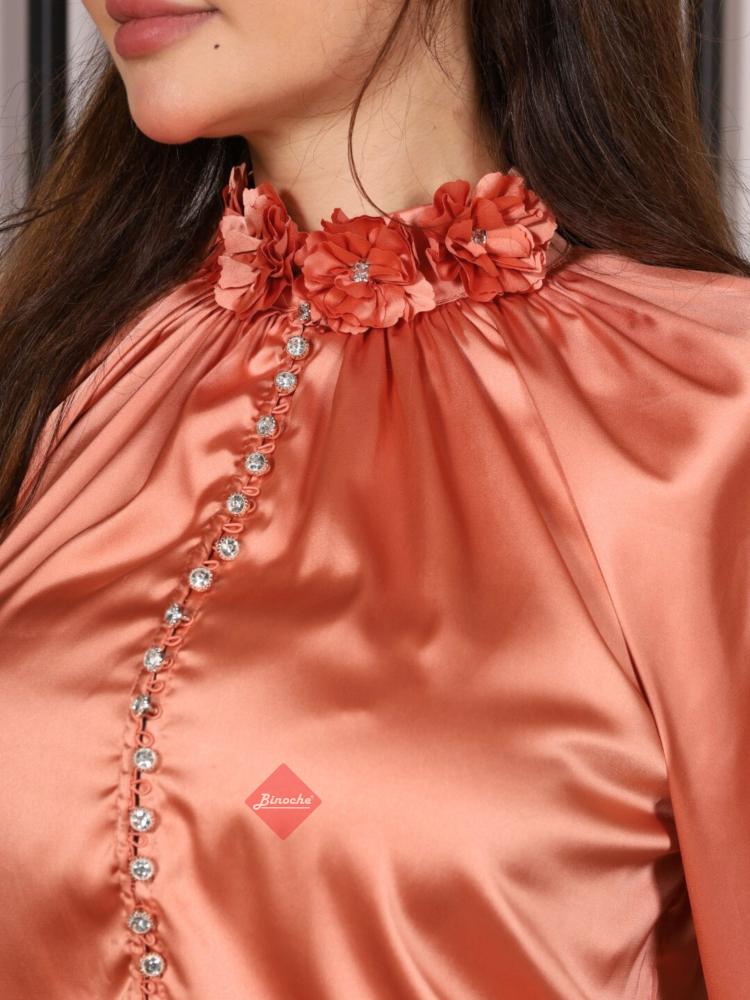 بلوزة هاينك مزينة بورود ستايل اكمام طويلة