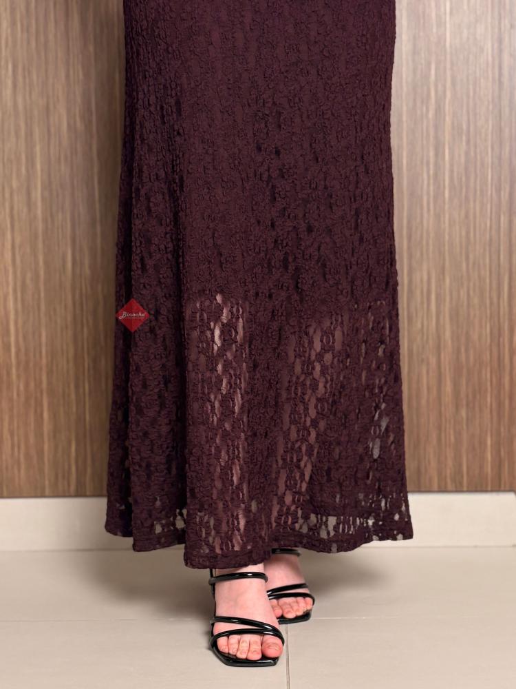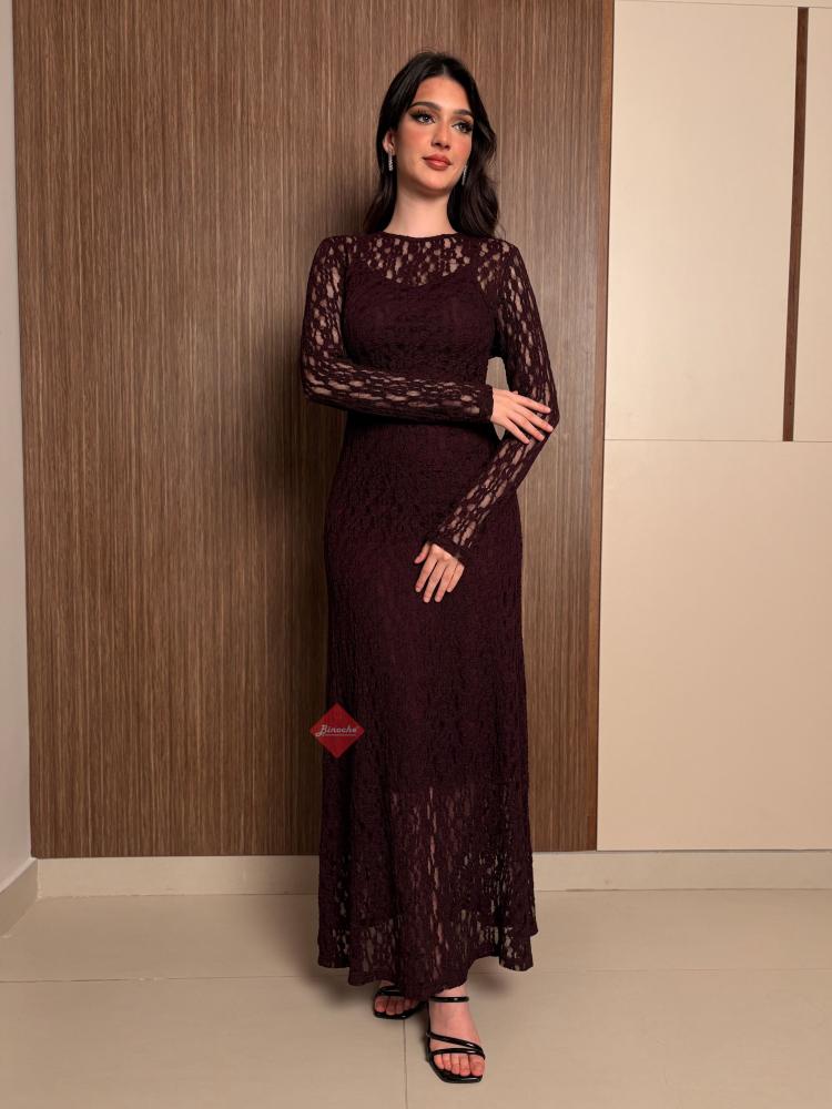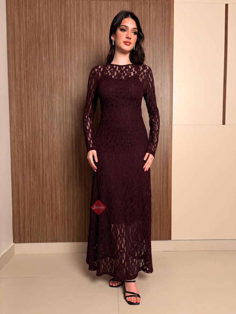 فستان ناعم دانتيل راقي بأكمام طويلة أنيقة