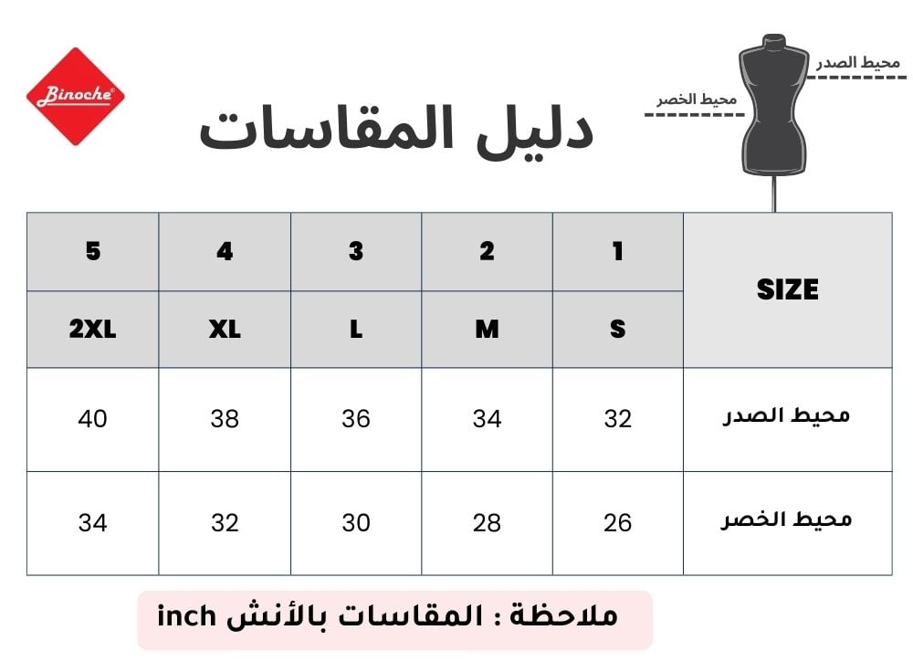 - المقاسات: 1 / 2 / 3 / 4 / 5