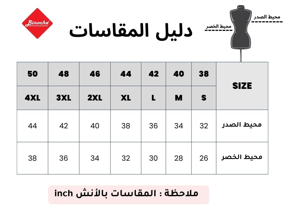 المقاسات : 38 / 40 / 42 / 44 / 46