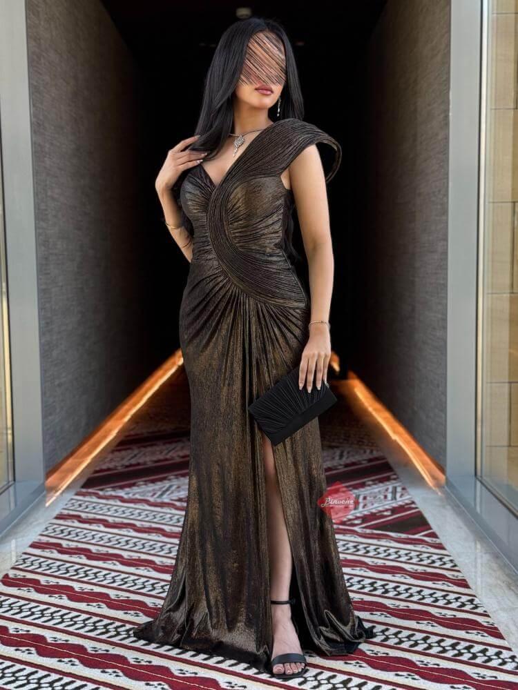 فستان سهرة طويل ناعم لامع بتصميم مميز