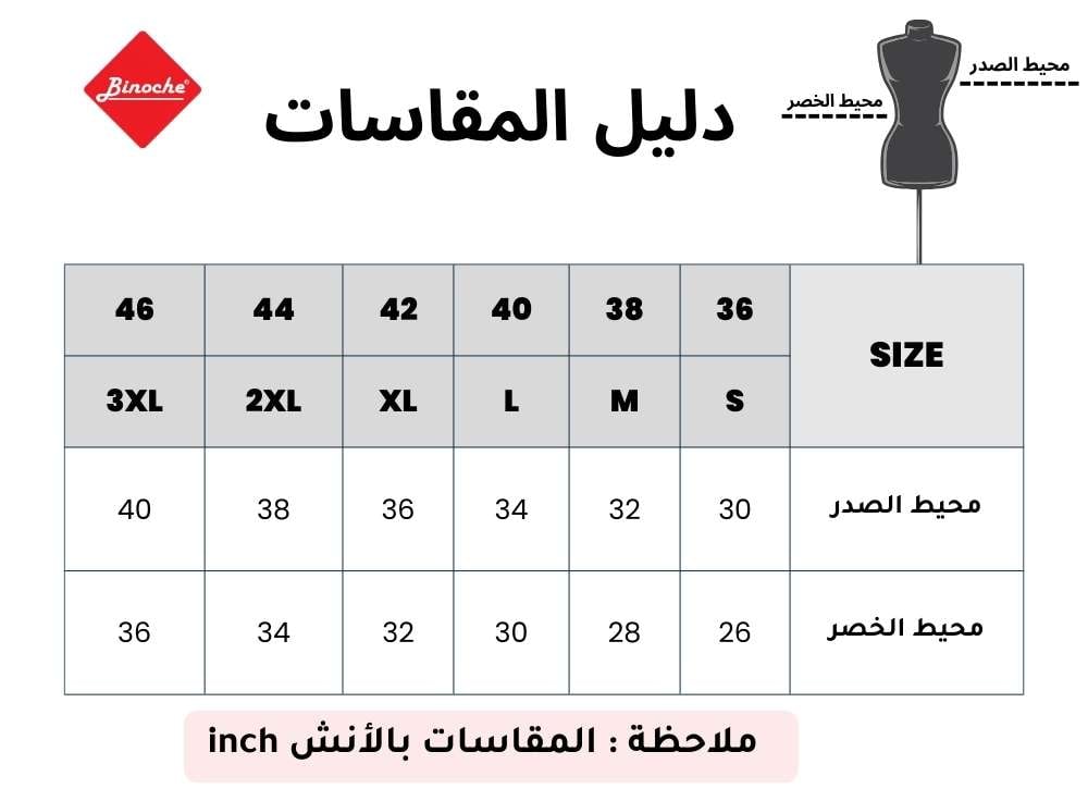 - المقاسات: 36 / 38 / 40 / 42 / 44 / 46