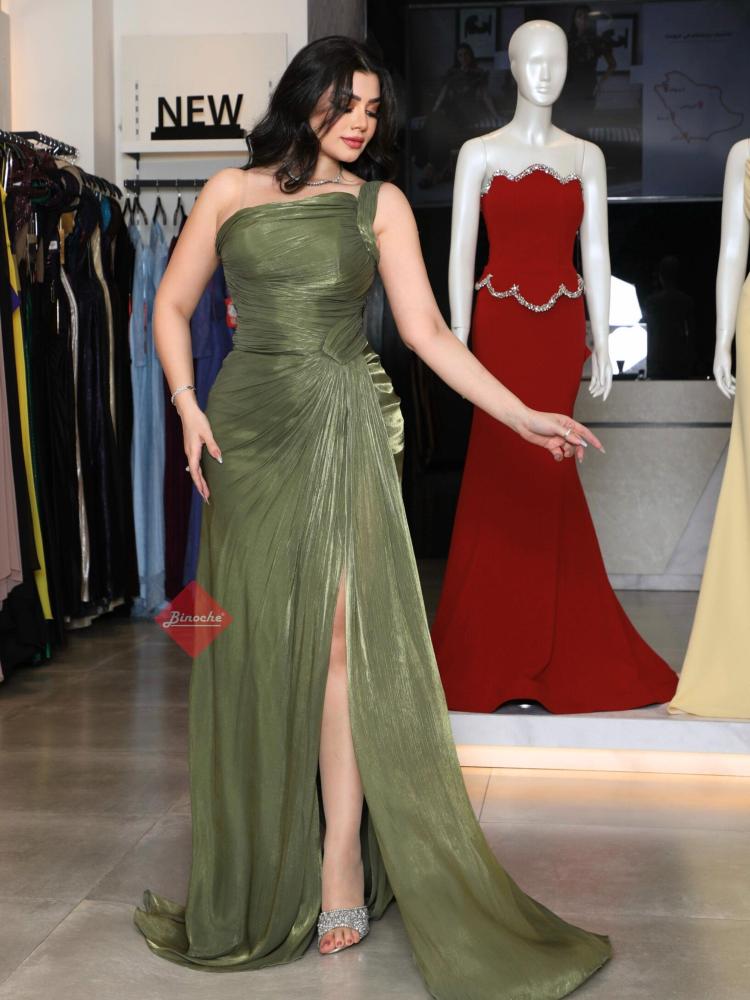 نوع القماش: شيفون بلمعة ساحرةاللون: زيتوني / بيج فاتح / بترولي / سومو / بيبي بلو / عودي / بتر يلو / خزامى / بنيخط العنق: مفتوحالاكمام: ون شولدرالتمدد: غير قابل للتمددطول الفستان: 64 إنشمقاس المودل: 36نوع المناسبة: زواج/ حفله خاصهالمقاسات: 36 / 38 / 40 / 42 / 44إرشادات الغسيل: يغسل ويكوى بالبخار بدرجة حراره منخفضه 40% ويجفف بالتعليق.تفاصيل اكثر عن الفستان: فستان سهرة أنيق بكتف واحد بألوان مميزة و لمعة ساحرة ، مصنوع من قماش الشيفون الفاخر. يتميز بتصميم عصري يجمع بين الأناقة والجاذبية، مع قصة البليسيه الأنيقة وخصر محدد. مثالي لإطلالة ساحرة في المناسبات الخاصة.