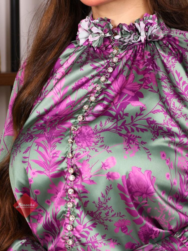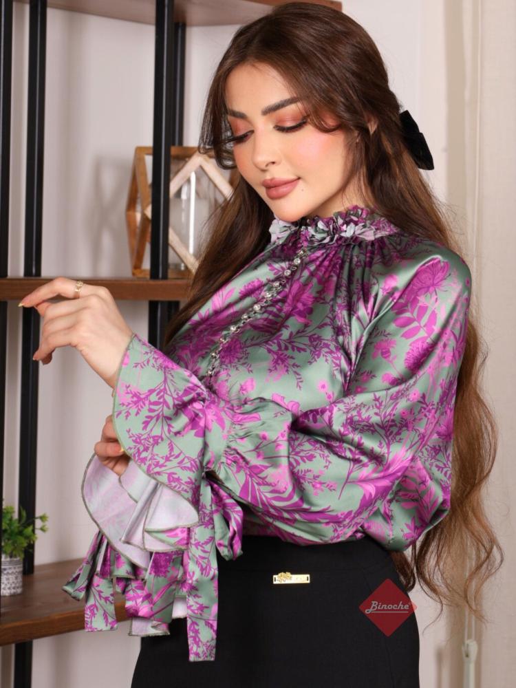نوع القماش : ساتاناللون : مشجرالتمدد : غير قابل للتمددالياقة: عاليةالاكمام: طويلةمقاس العارضة: 38طول العارضة: 170 سمنوع المناسبه : زيارات / اعياد / العملالمقاسات: 38 / 40 / 42/ 44 / 46ارشادات الغسيل : يغسل ويكوى بالبخار بدرجة حراره منخفضه 40% ويجفف بالتعليقروابط اخرى : التنورة / كولكشن العودة الى المدارستفاصيل اكثر عن البلوزة: تألقي بإطلالة فاخرة مع هذا القميص الأنيق المصمم بأكمام طويلة مع تفاصيل كشكش فاخرة على الصدر والأكمام يمكن تنسيقه بسهولة مع التنانير أو البناطيل لإطلالة مكتملة الأناقة