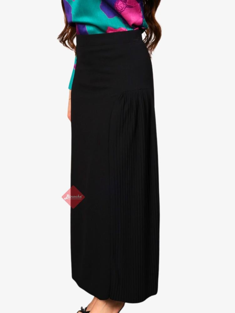 تفاصيل اكثر عن التنورة : هذه التنورة مثالية للإطلالات الرسمية في العمل أو الاجتماعات، وأيضاً تناسب الإطلالات الكاجوال عند تنسيقها مع بلوزة أو قميص عصري. لونها الأسود يجعلها قطعة أساسية يسهل دمجها مع مختلف الألوان والإكسسوارات، مما يجعلها خياراً مثالياً لكل موسم.